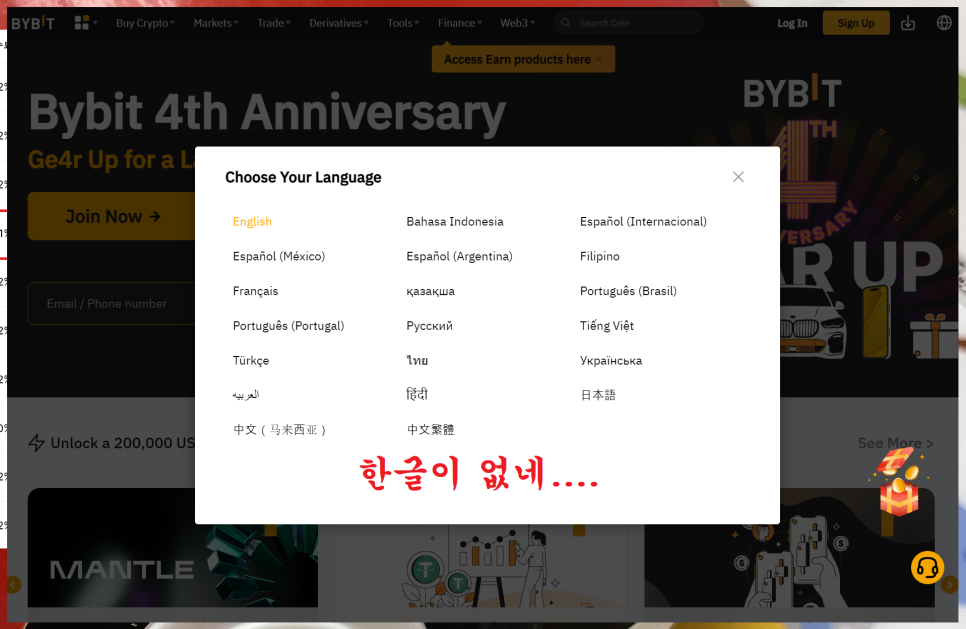 위의 사진을 보면 바이비트도 한글을 지원하지 않습니다.