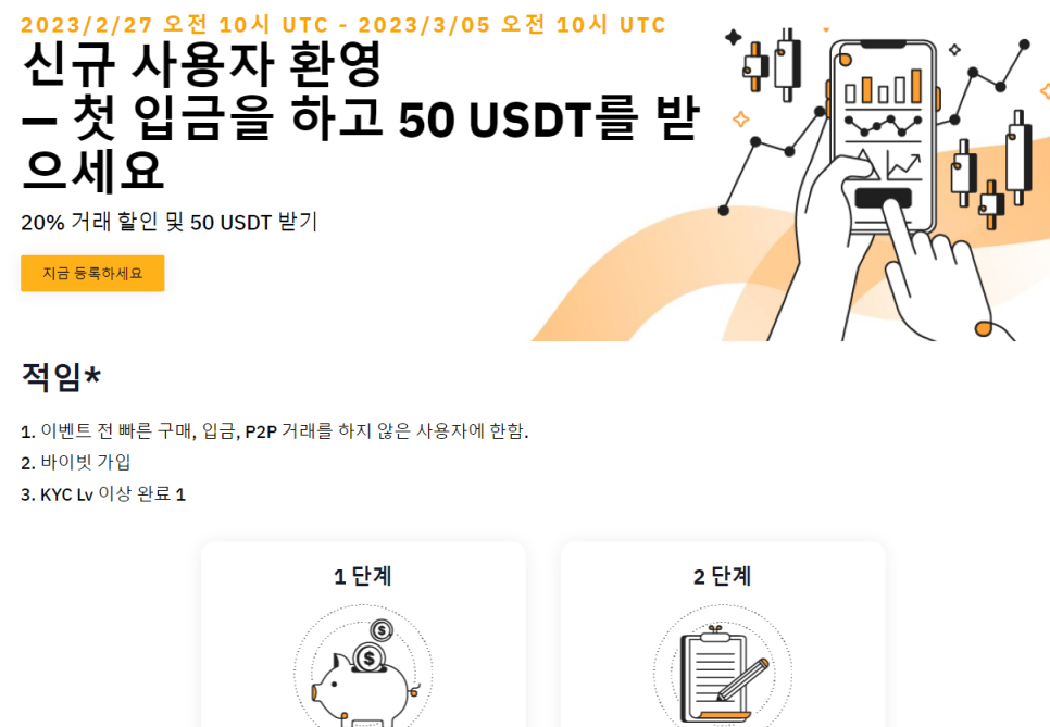 바이비트 거래소에 가입한 뒤 KYC 1단계를 완료하시고, 리플코인을 최소 500개 이상 입금할 경우 50달러(약 6만원)의 증정금을 받으실 수 있습니다. 자세한 내용은 글의 맨 밑에서 설명을 해드리겠습니다.