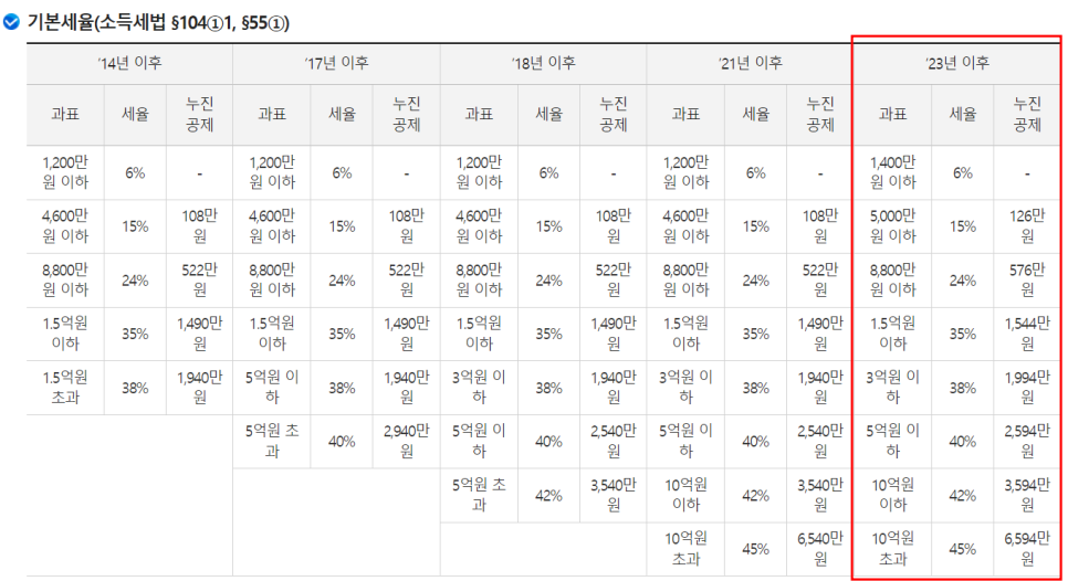 하지만 지금은 23년 이후의 기본세율을 보시면 됩니다!