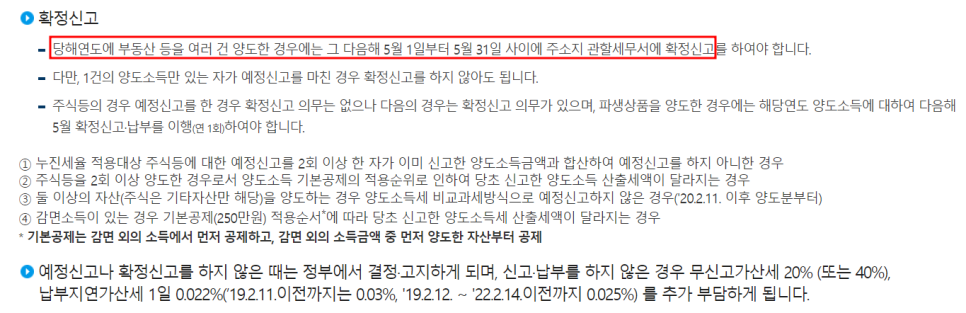 혹시 당해연도에 여러 건의 양도하는 경우는 확정신고를 해야하기도 하고, 세금에 대해 잘 모르고 신고 안 했다가 가산세를 내는 것보다는 그냥 안전하게 신고하는 편이 낫더라고요.