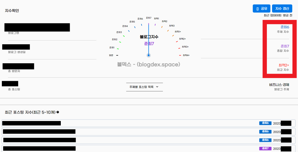 종합 지수가 곧 독자님의 블로그 지수가 되겠습니다.