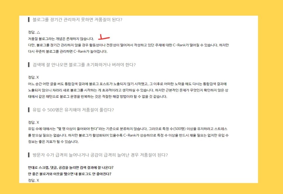 그러니 쉽게 말씀드리자면, 네이버 저품질을 당하지 않기 위해서는 네이버에 반하는 행위를 하면 안됩니다.