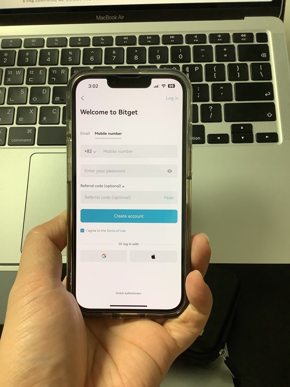 보시는 것처럼 이메일 주소 혹은 휴대폰 번호를 통한 비트겟 회원가입이 가능합니다.