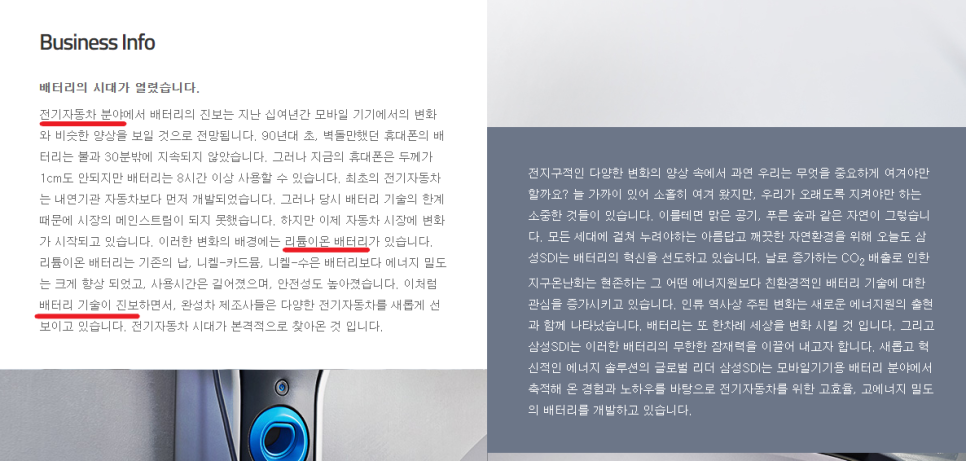 다음으로는 자동채 배터리, 조금 더 정확하게는 전기차 배터리 사업입니다.