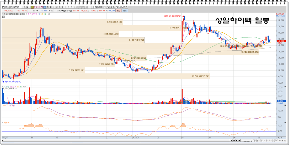 ·22~23년 : 고점 187,500원 / ·저점 81,200원