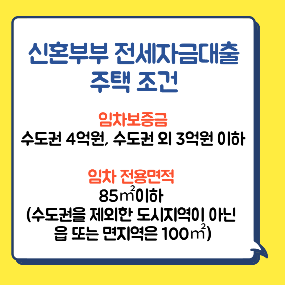 임차보증금이 수도권 4억원, 수도권 외 3억원 이하여야 하며 임차 전용면적 85㎡이하 주택이여야 합니다.