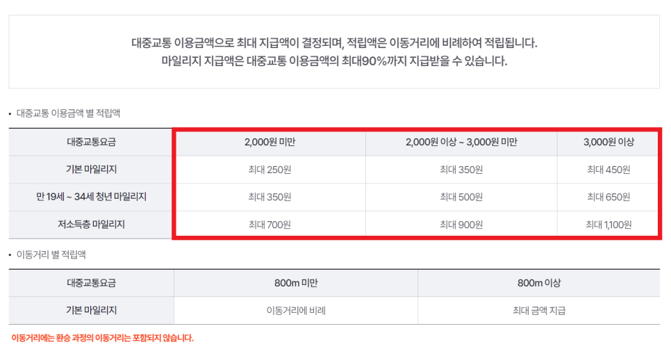 알뜰교통카드 마일리지에 대한 수치를 살펴봅시다.