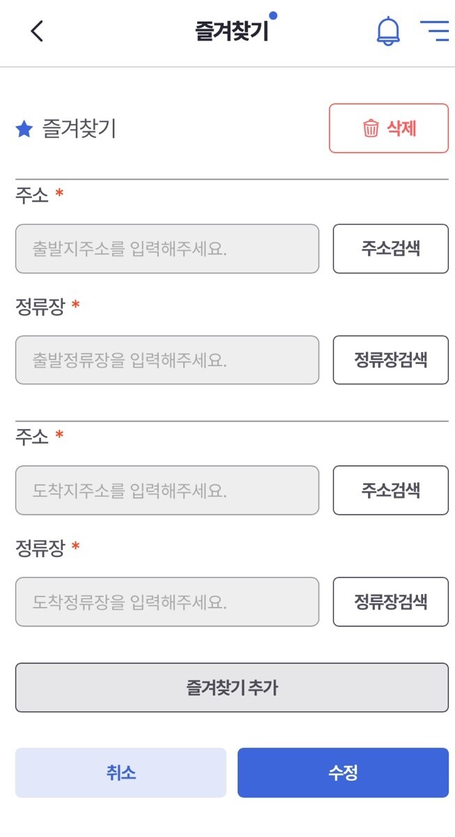 알뜰교통카드 즐겨찾기를 할 수도 있습니다.