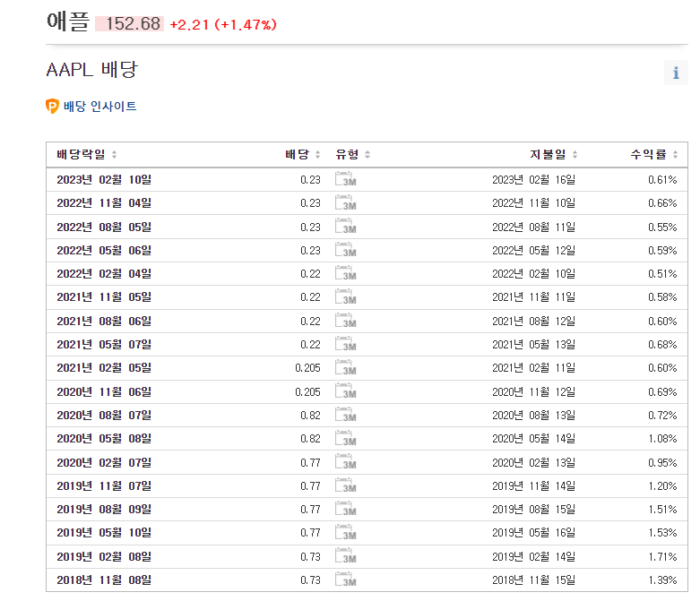 2. 애플 배당금 정보