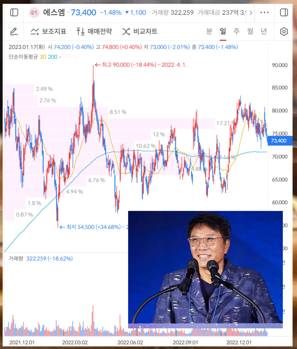 22년말은 전반적으로 주가가 어려웠지만 그나마 잘 버틴 섹터 중 하나로 불릴만한 것들이 엔터주였는데요. 기본적으로 엔테주의 특징은 고밸류주식 (PER가 높음)이라서 현재와 같은 금리 환경을 이겨내기 힘든 주식이긴한데요.