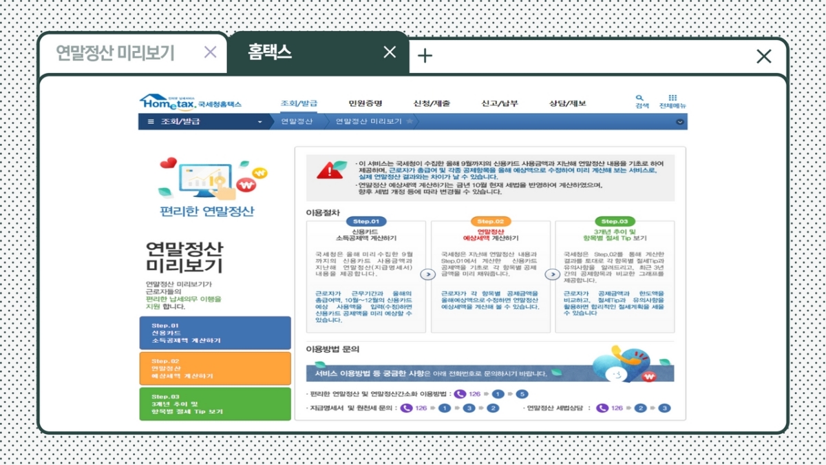매년 1월 15일부터 시작되는 연말정산 시즌. 이제 두 달이 채 남지 않았다. 같은 월급을 받아도 올 한해 어떻게 지출했는지에 따라 연말정산은 13월의 월급이 될 수도, 세금폭탄이 될 수도 있다. 물론 본래 내야 할 세금보다 더 많이 냈기에 환급을 받는 것이고 본래 내야 할 세금보다 적게 냈기에 추가 납부를 하는 것이라지만, 괜히 이득을 보는 것 같고 손해를 보는 것만 같다. 세금을 조금이나마 덜 낼 수 있다면 얼마나 좋을까. 연말정산 미리보기 서비스를 이용해 연말까지 남은 기간동안 최적의 지출계획을 세워보자.