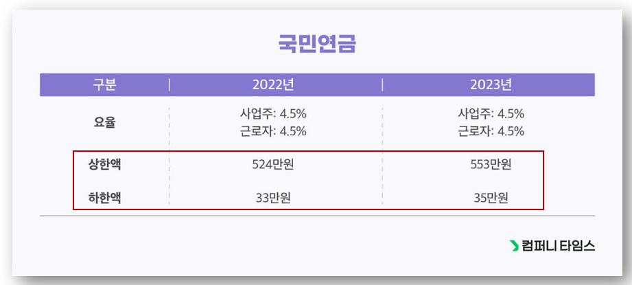 2023년 국민연급은 2022년과 똑같이 적용됩니다.