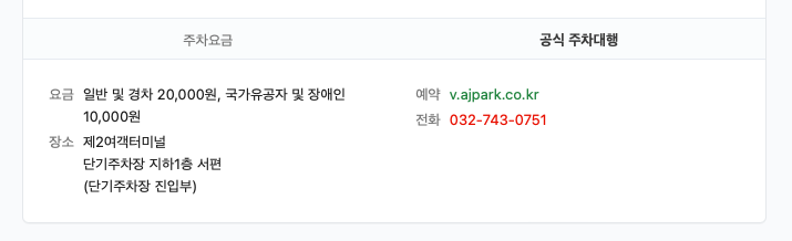 보시는 것처럼 인천공항 제2여객터미널의 장기 주차장을 이용을 대행해주는 공식업체가 있고 그 외 언급되지 않는 일반 업체들이 있습니다. 공식업체의 경우 주차대행 서비스를 이용하는 것 자체에 일반 및 경차의 경우 2만원, 국가유공자 및 장애인은 1만원의 비용이 발생합니다. 몇몇 알아본 바로 일반 업체들은 이런 발렛 비용이 발생하지 않는 것 같더라구요. 대신 차량을 어떻게 관리할지 모른다는 불안감이 생길 수도 있습니다.