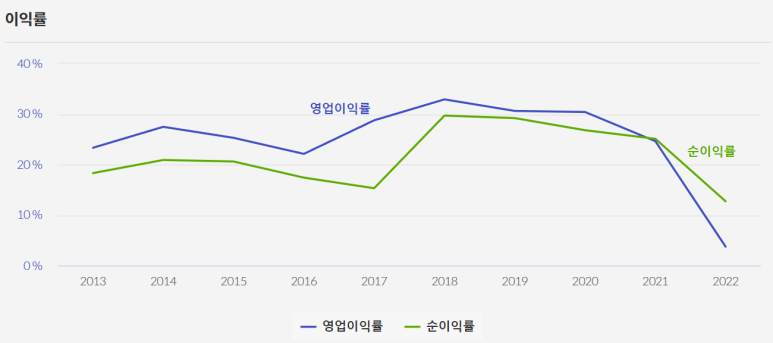 이번 실적 뿐만 아니라 인텔의 수익성은 지난 1년 동안 급격히 감소세를 보이고 있습니다.