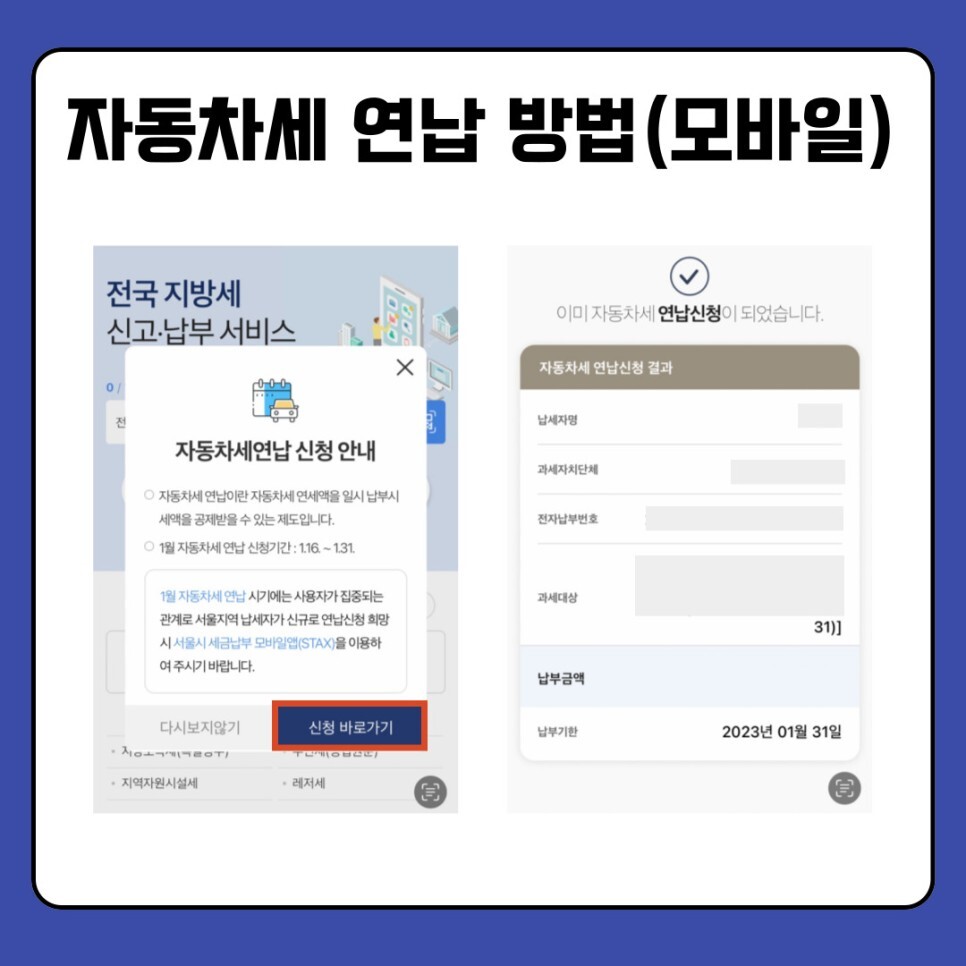 팝업창이나 메인화면에서 자동차세 연납신청을 눌러 진행해주시면 됩니다.