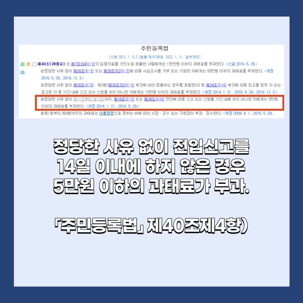 사실 과태료도 과태료지만 전입신고를 늦게 했다