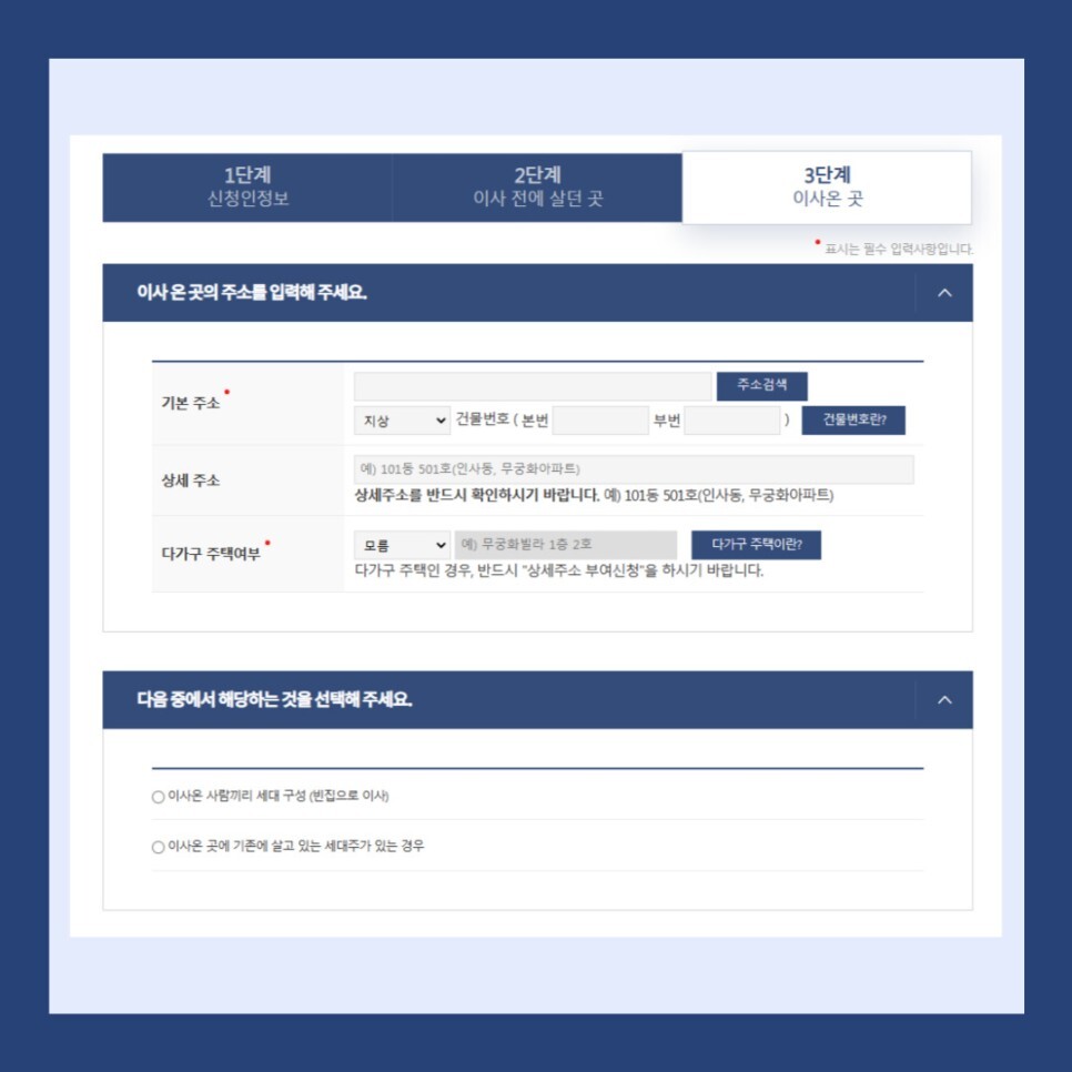 새롭게 이사 온 곳의 주소를 입력해주시면 되는데요.