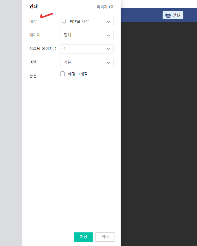해당 부분을 PDF로 저장으로 바꿔주셔야 합니다.