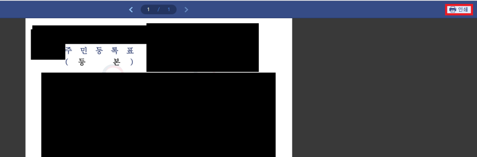 이후 최종적으로 아까와 같이 주민등록등본을 발급해주시면 되겠습니다.