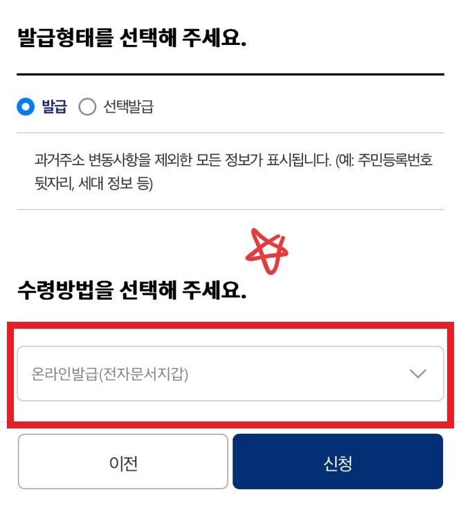 이번에는 온라인발급(전자문서지갑)으로 해주셔야 합니다.