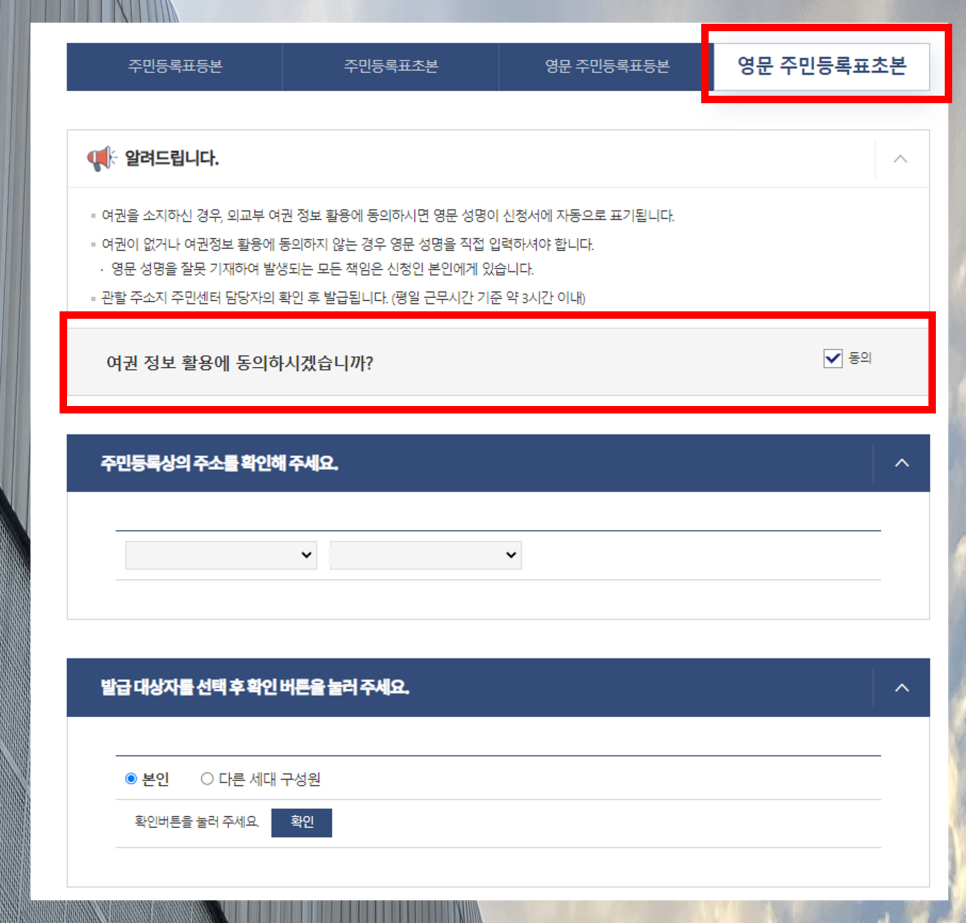 3. 주민등록등본 영문 발급