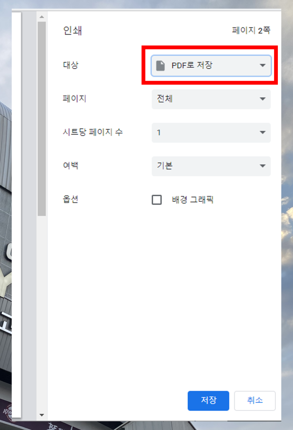 인쇄 후 스캔해서 PDF저장할 필요 없이 여기서 바로 PDF파일 저장이 가능합니다.