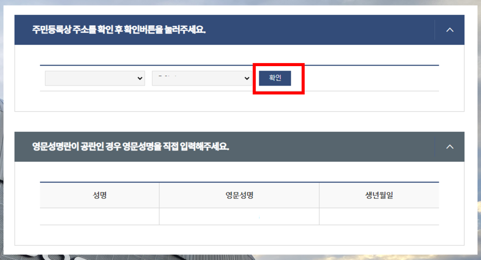 주민등록상 주소 옆 ‘확인’을 누르면 하단에 이와 같이 내 영문성명을 확인할 수 있습니다.