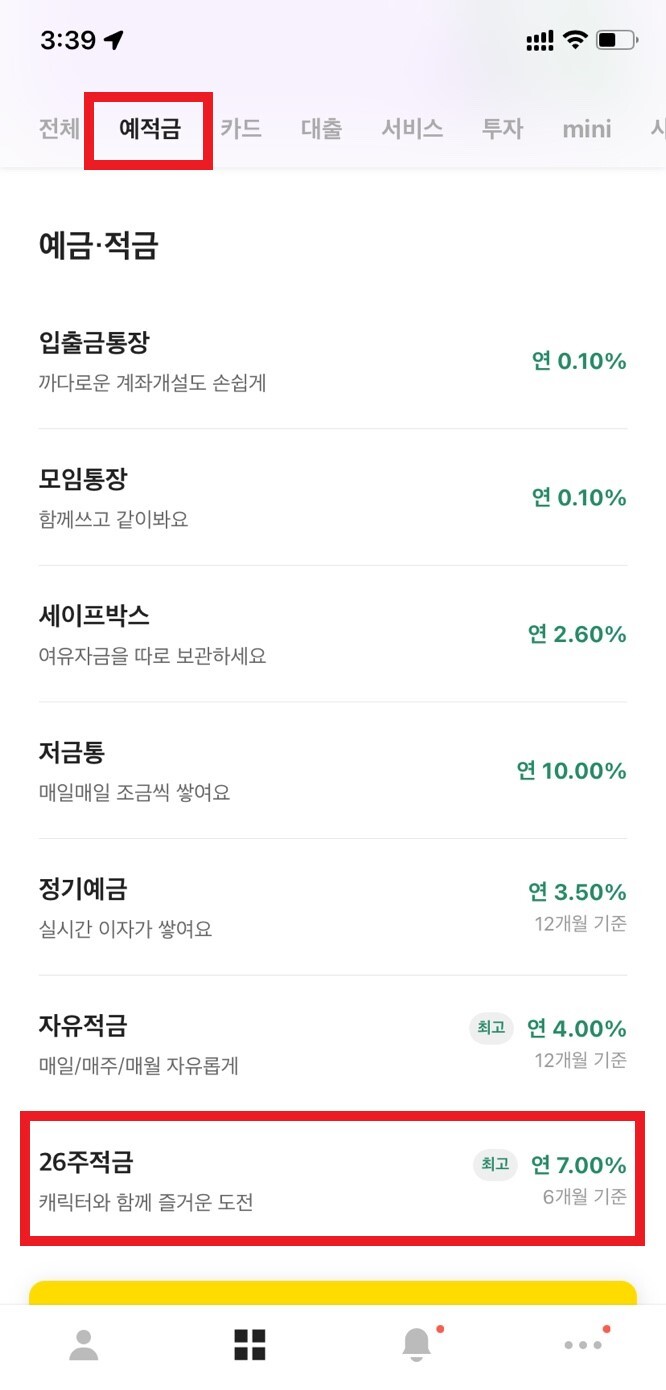 지금부터는 카카오뱅크 26주 적금에 한 번 가입을 해보도록 하겠습니다.
