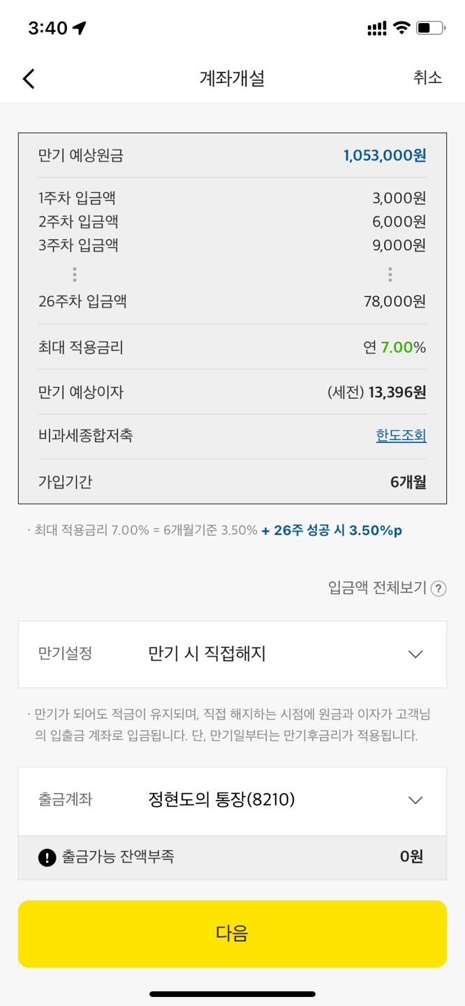 26주이다보니 6개월이며, 적금은 1년 기준으로 3.5%라고 합니다.