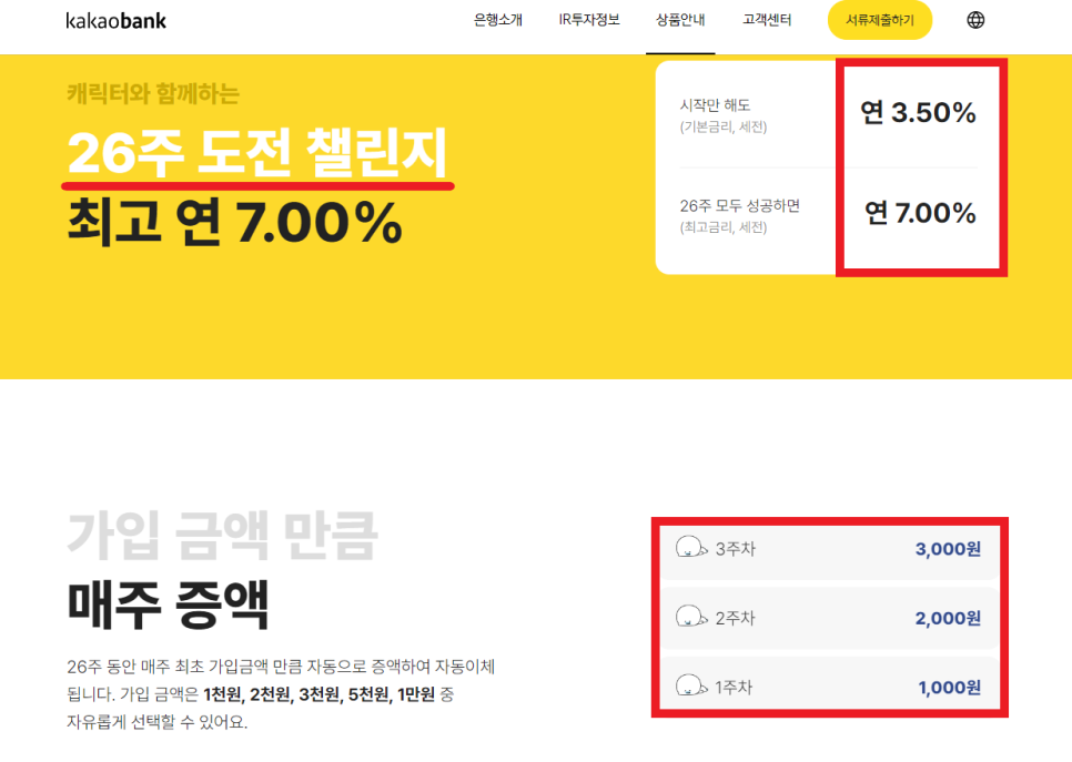 시작만 해도 기본 금리가 연 3.5%라고 하며 26주 모두 성공시에는 7%를 받을 수 있다고 합니다.