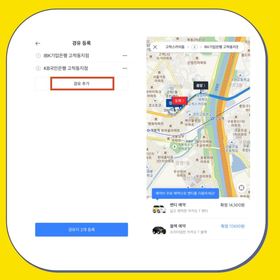 카카오택시 경유 방법