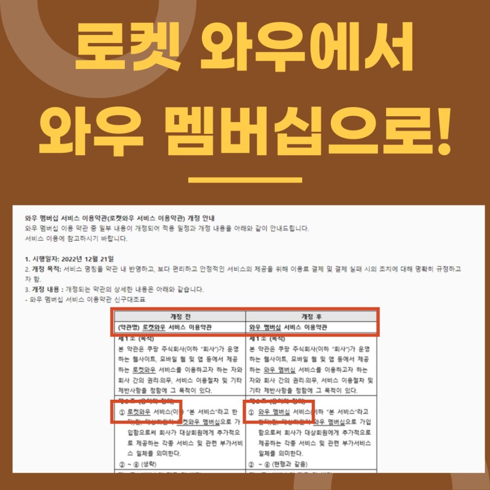 쿠팡 로켓 와우 멤버십은 12월 21일을 시작으로 로켓이라는 이름을 떼고 와우 멤버십으로 명칭이 변경될 예정입니다. 이미 빠른 배송을 의미하는 로켓이라는 단어는 쿠팡의 고유명사처럼 이미지가 굳어졌으며 멤버십 시행 후 처음으로 이름을 교체하는만큼 내년부터 다른 혜택이 추가될 수도 있을지 기대해봐야겠네요. 가격도 같이 올리는건 아니겠죠?