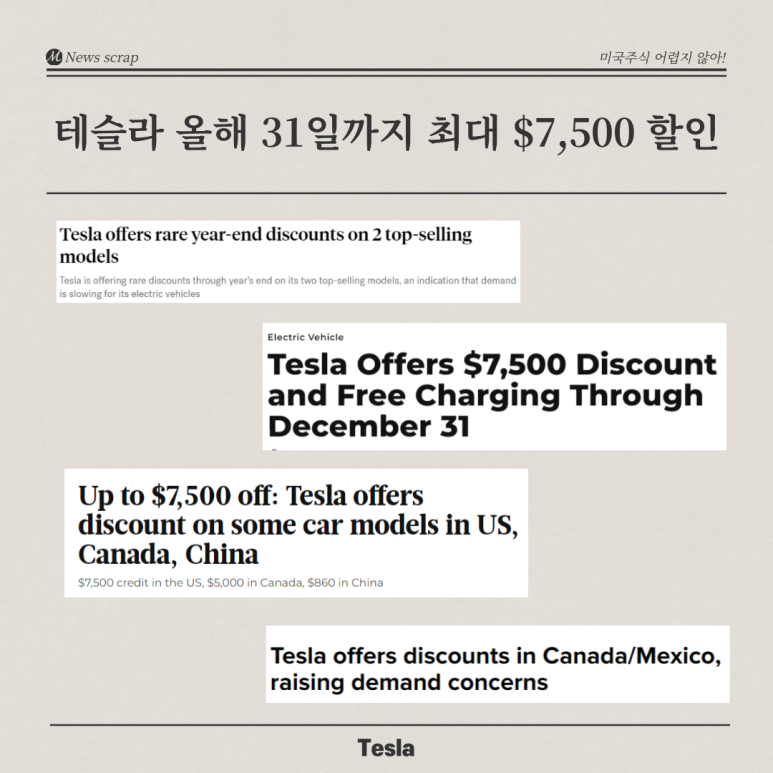 테슬라는 올해 12월 31일까지 모델3와 모델Y 신차 구매고객들에게 7천500달러의 할인 혜택을 제공하기로 발표하였습니다. 캐나다,멕시코,중국 등도 프로모션이 적용 되네요....