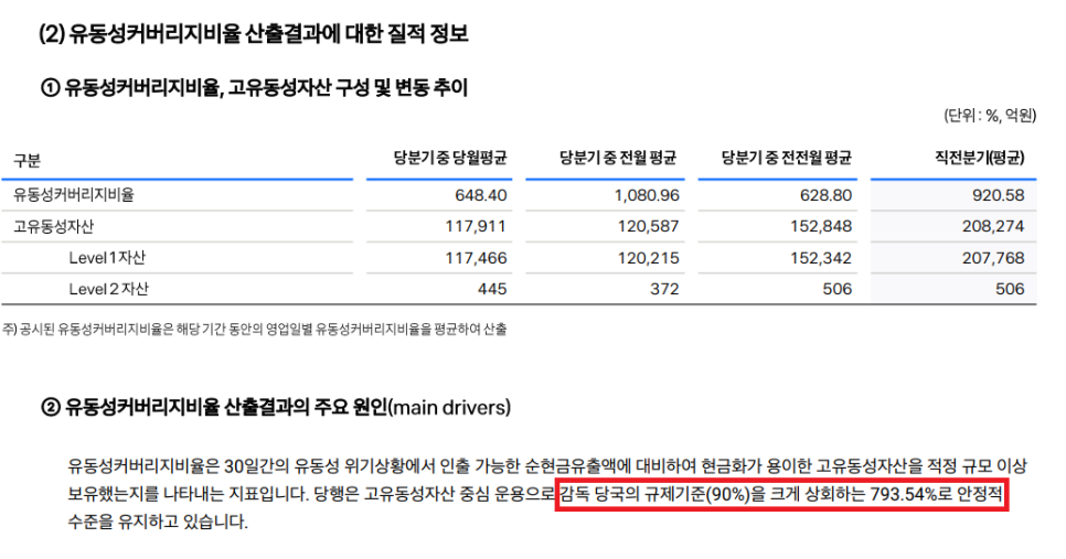 - LCR 비율 약 800%