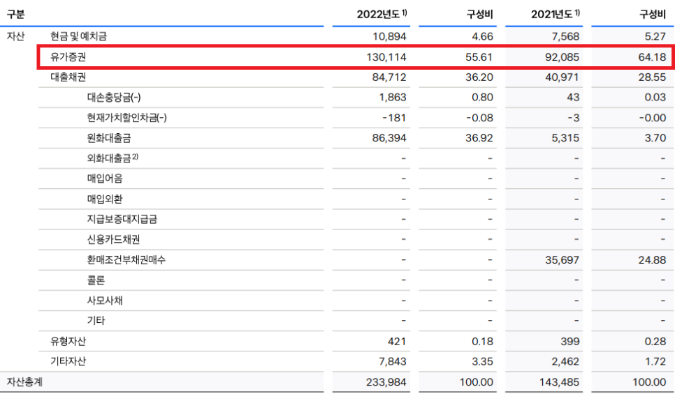 토스뱅크가 자산의 대부분이 국채와 금융채로 이루어져있고, 아직 적자인 재무상태 때문에