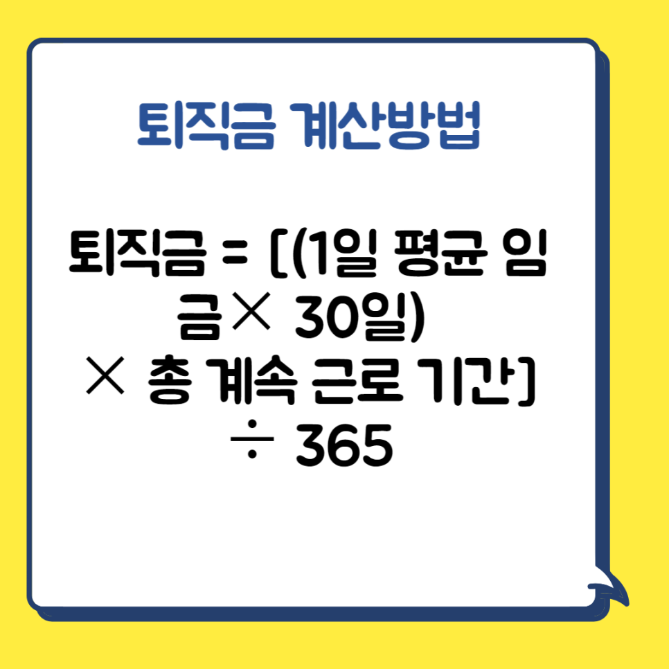 퇴직금 = [(1일 평균 임금× 30일) × 총 계속 근로 기간] ÷ 365