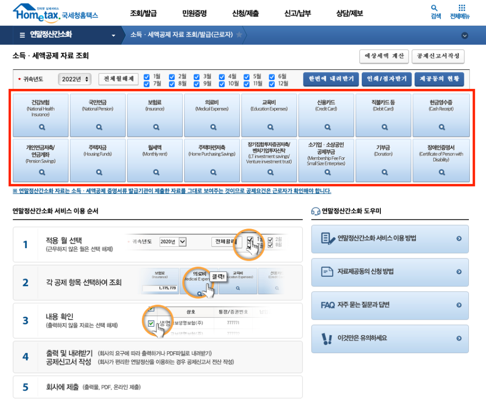 이렇게 홈택스에서 지원하는 ‘연말정산 간소화’ 서비스를 이용해서 클릭 몇번 만으로 연말정산을 위한 서류 준비를 완료할 수 있었습니다. 그럼 이제 이렇게 제출한 서류에 있는 내용들을 기반으로 내년에 지급받을 연말정산 환급금을 미리 확인해보는 방법을 알아보도록 하겠습니다.