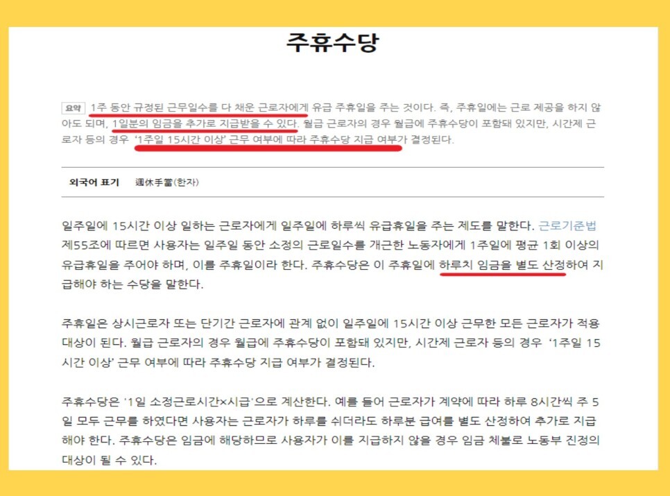여기서 잠깐 주휴수당이 뭔지 알려드릴게요.