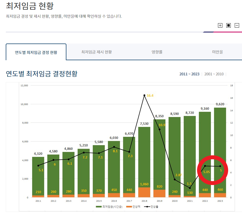 2022년에 5.05%, 금년도에는 5%가 올랐습니다.