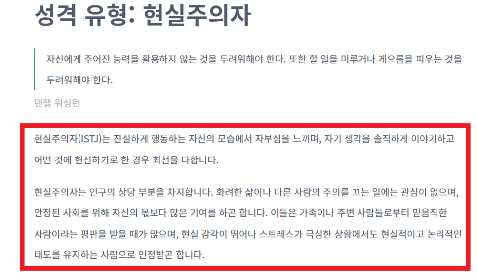 ISTJ 특징으로는 굉장히 현실적인 사람이라고 합니다.