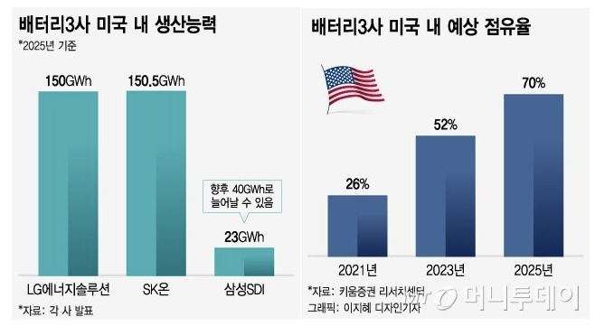 전통 완성차 업체들이 전동화 전략을 선언했고 미국 현지에 GM, 포드와 각각 손잡은 LG에너지솔루션과 SK이노베이션이 공격적으로 배터리 생산능력을 늘리고 있어서입니다. 이렇듯, 미국시장에서 파나소닉 점유율은 떨어지고있으며 우리 K배터리 회사들은 점유율이 올라가고 있습니다. 미래에 배터리 3사 (LG엔솔 / SK온 / 삼성SDI)의 미국 점유율은 70%까지 올라갈 것으로 예상합니다