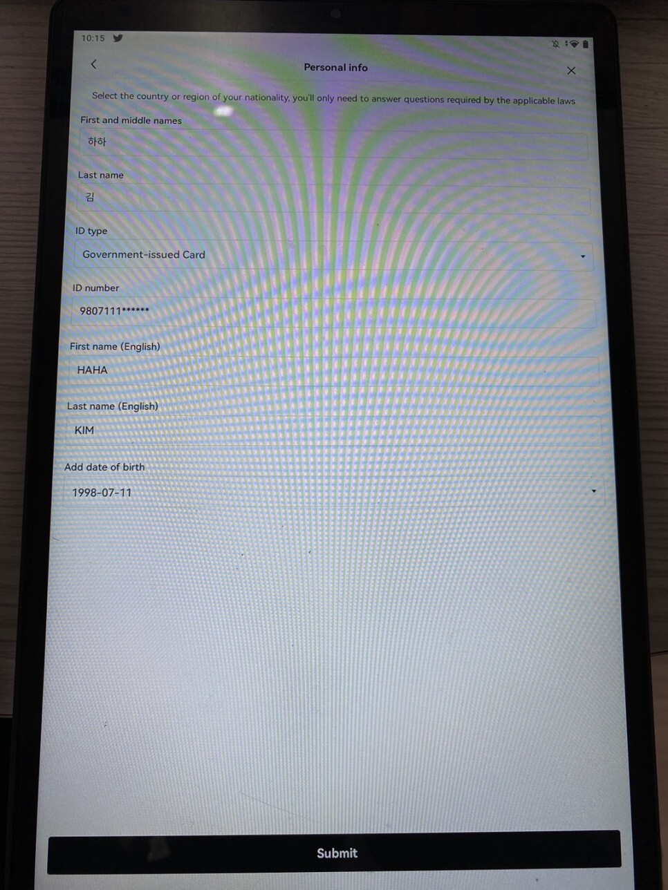 그리고 ID TYPE은 신분증 종류입니다만 저는 주민등록증을 선택했습니다.