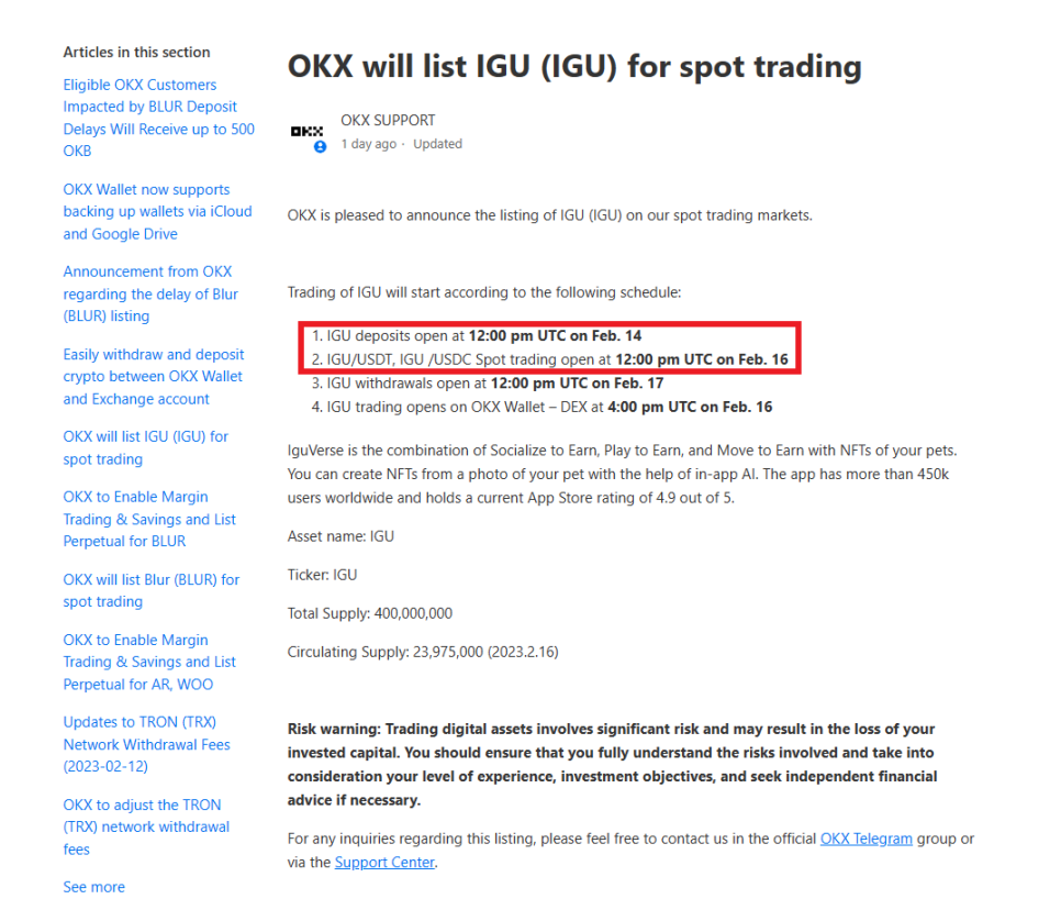 IGU OKX 상장 정보를 조금 더 상세히 확인해보도록 하겠습니다.