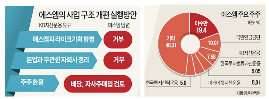 이때부터 에스엠은 주요주주들끼리의 경영관련 의견충돌이 시작되었습니다.