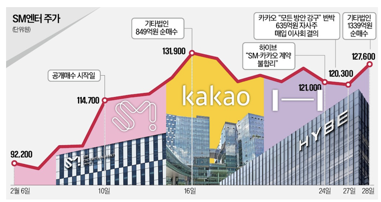 만약 카카오가 예정된 SM 시장 지분 매집에 성공할 경우 최대 40%를 거머쥐게 되면서