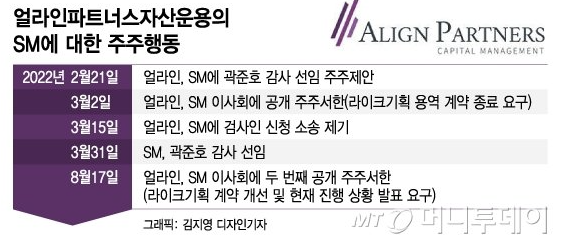 과거 부터 얼라인파트너스는 SM이 최대 주주인 이수만 총괄 프로듀서의 개인 회사 라이크기획에