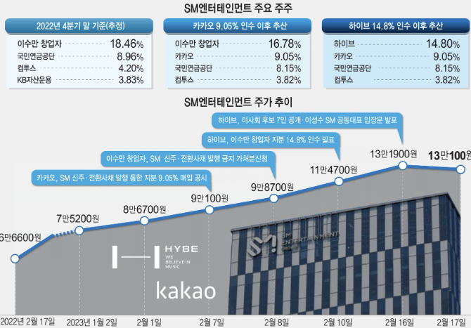 앞서 설명드린대로 하이브는 이수만 대주주로부터 에스엠 지분 14.8%를 확보해 1대주주로 올라서게 되었습니다