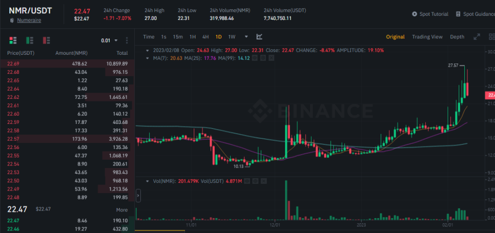 NMR (Numerai) 코인 역시 인공지능 관련 코인중 하나이며 시가총액은 1600억, 코인순위는 239위 정도 되는 코인입니다.