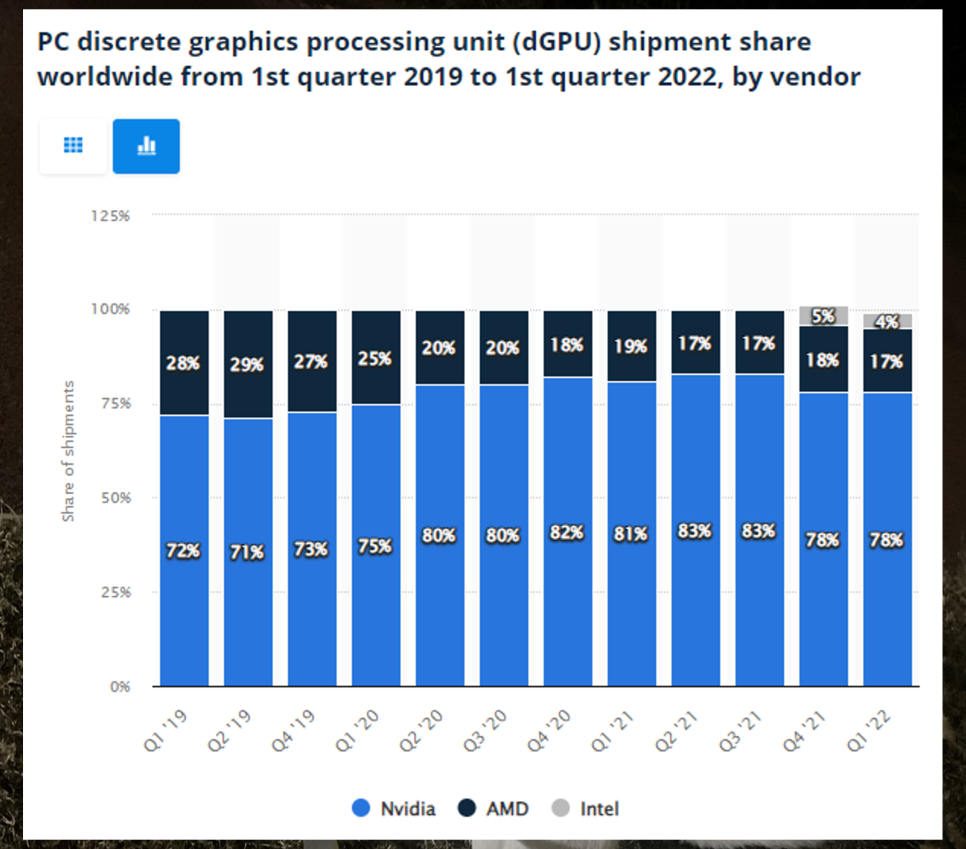 그리고 엔비디아는 이 GPU를 처음 만든 그래픽 카드 회사로 무려 80% 시장 점유율을 갖고 있습니다.